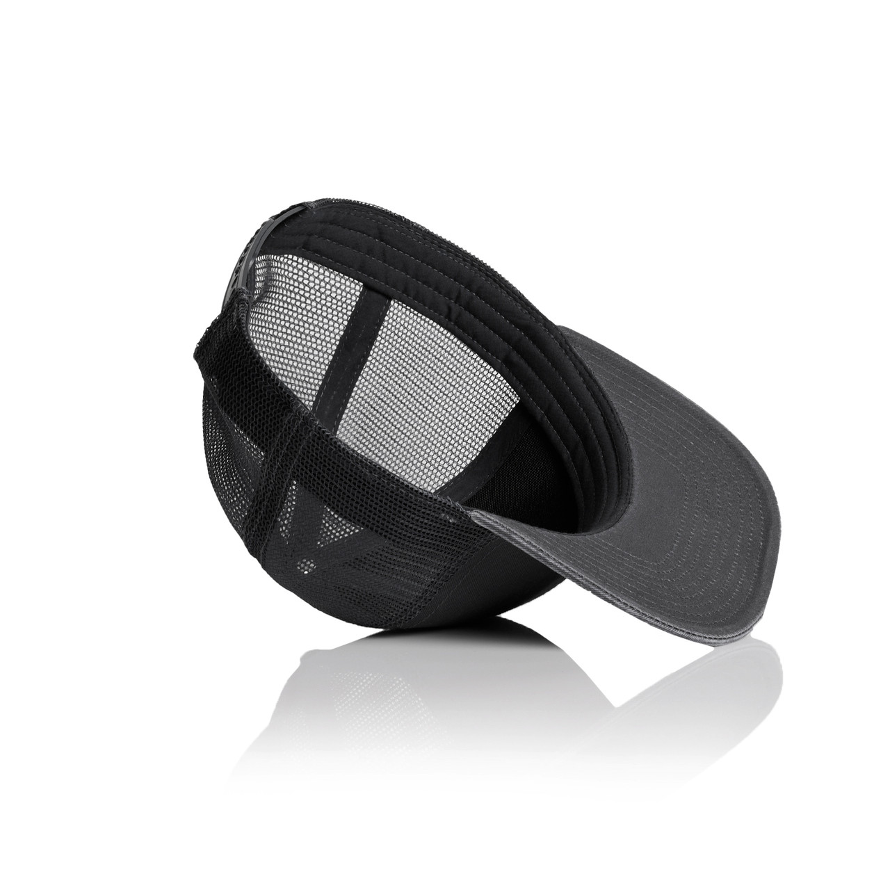 Mid weight, 100% cotton front and peak, 100% polyester mesh back